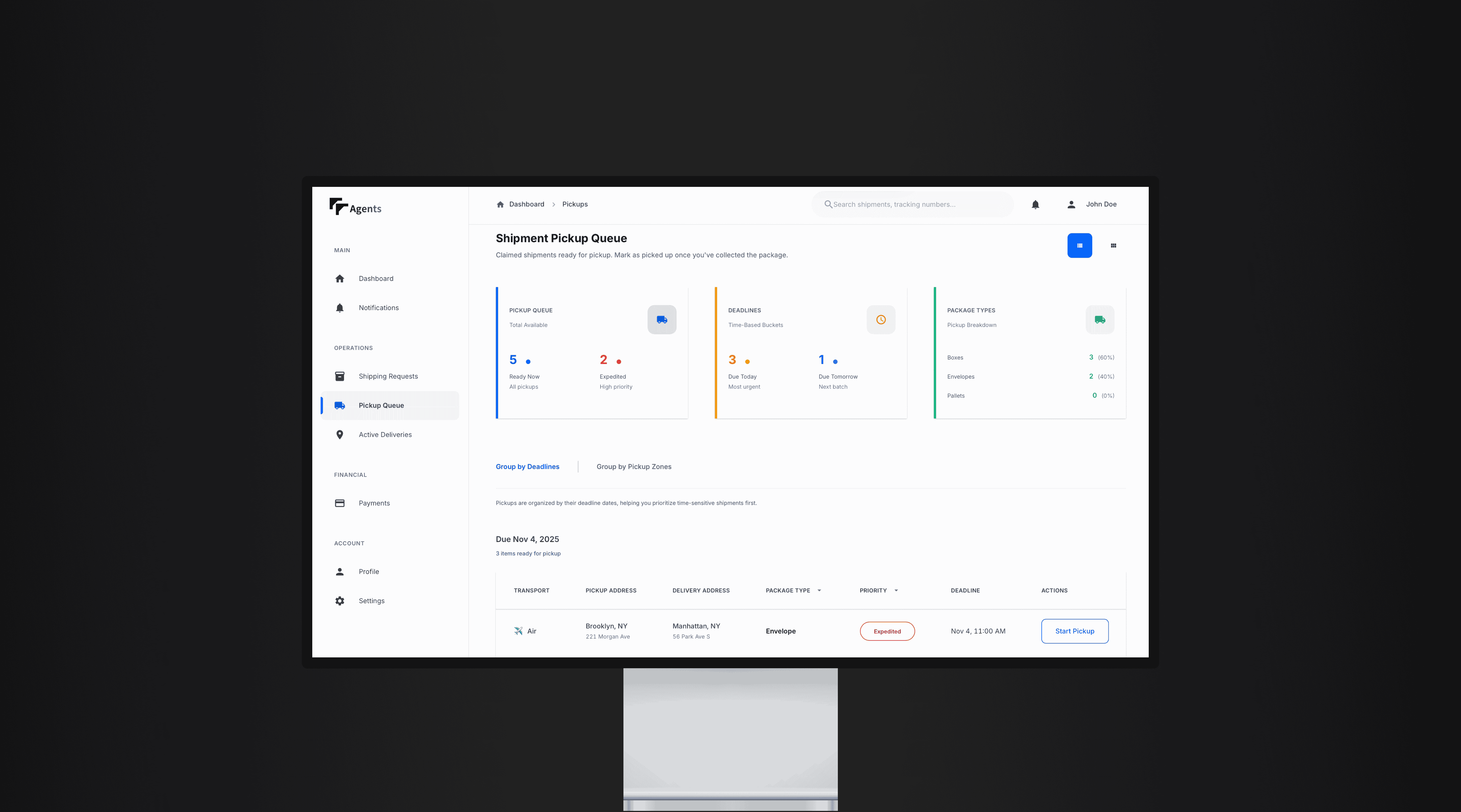Shipment activity, performance metrics, payments, and earnings all in one view. Agents know exactly where they stand, at any point in the day.